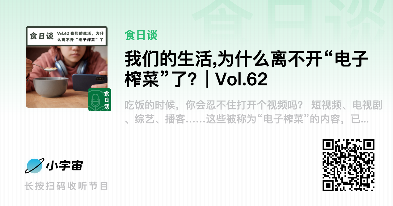 短视频、电视剧、综艺、播客……这些被称为“电子榨菜”的内容,已经悄悄变成很多人的日常。为什么现在吃饭不点开个视频,这顿饭就难以下咽?