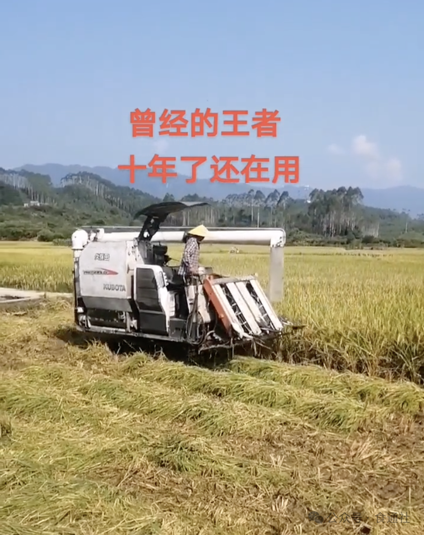 可后来,四大爷就失业了。因为年龄大,工地不再雇佣四大爷了。抢收也不需要接袋子的了。现在的久保田收割机驾驶室里有空调,玻璃封闭格挡隔绝粉尘,也能避免粉尘病。大粮仓也成为收割机标配,农户也不用满田地里扛袋子到车上了。他们只需要在粮仓满的时候,将带大车厢的三轮车放到对应位置接粮食即可。